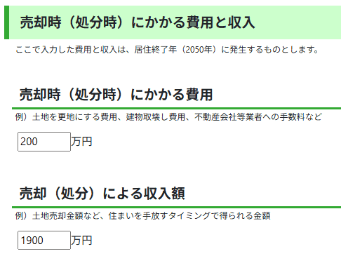 例えば税引き後の手取り収入額を「売却による収入額」のところに入力してもかまいません。